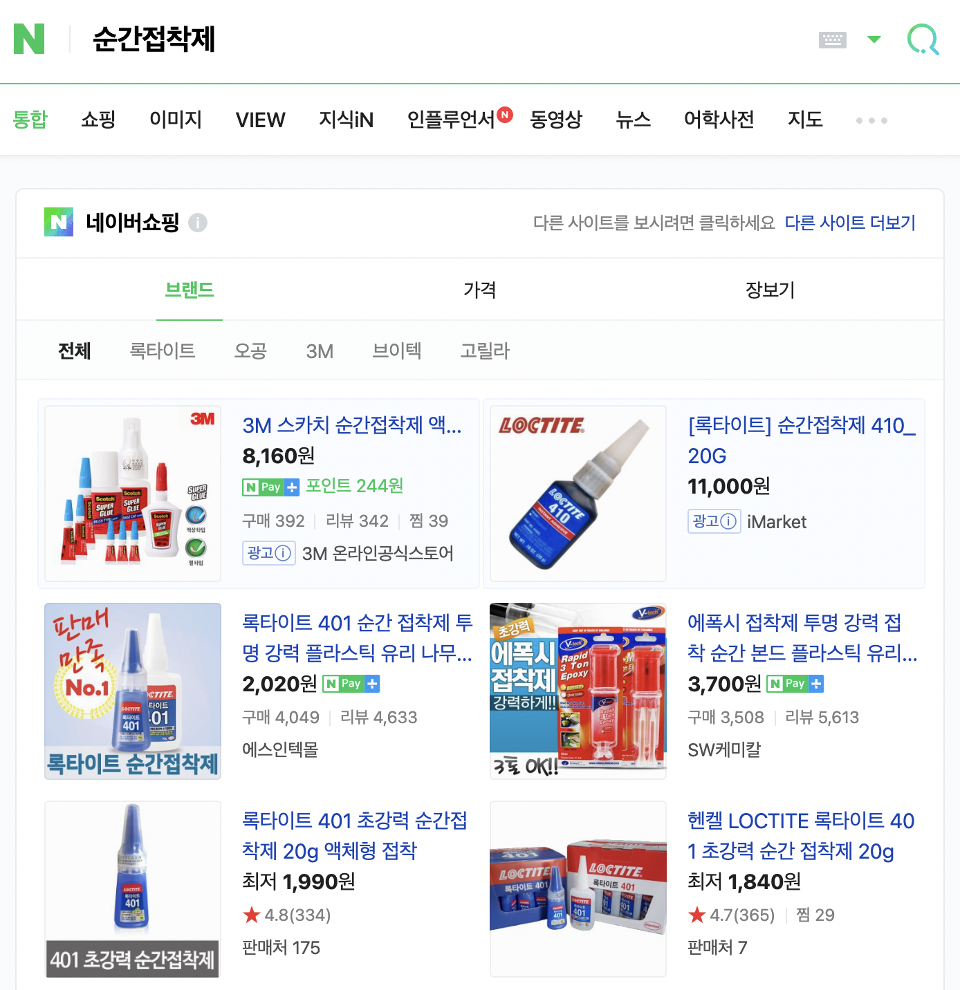 예를 들면 록타이트의 경우는 흔한 제품이 401, 410이란 숫자가 붙어있습니다.