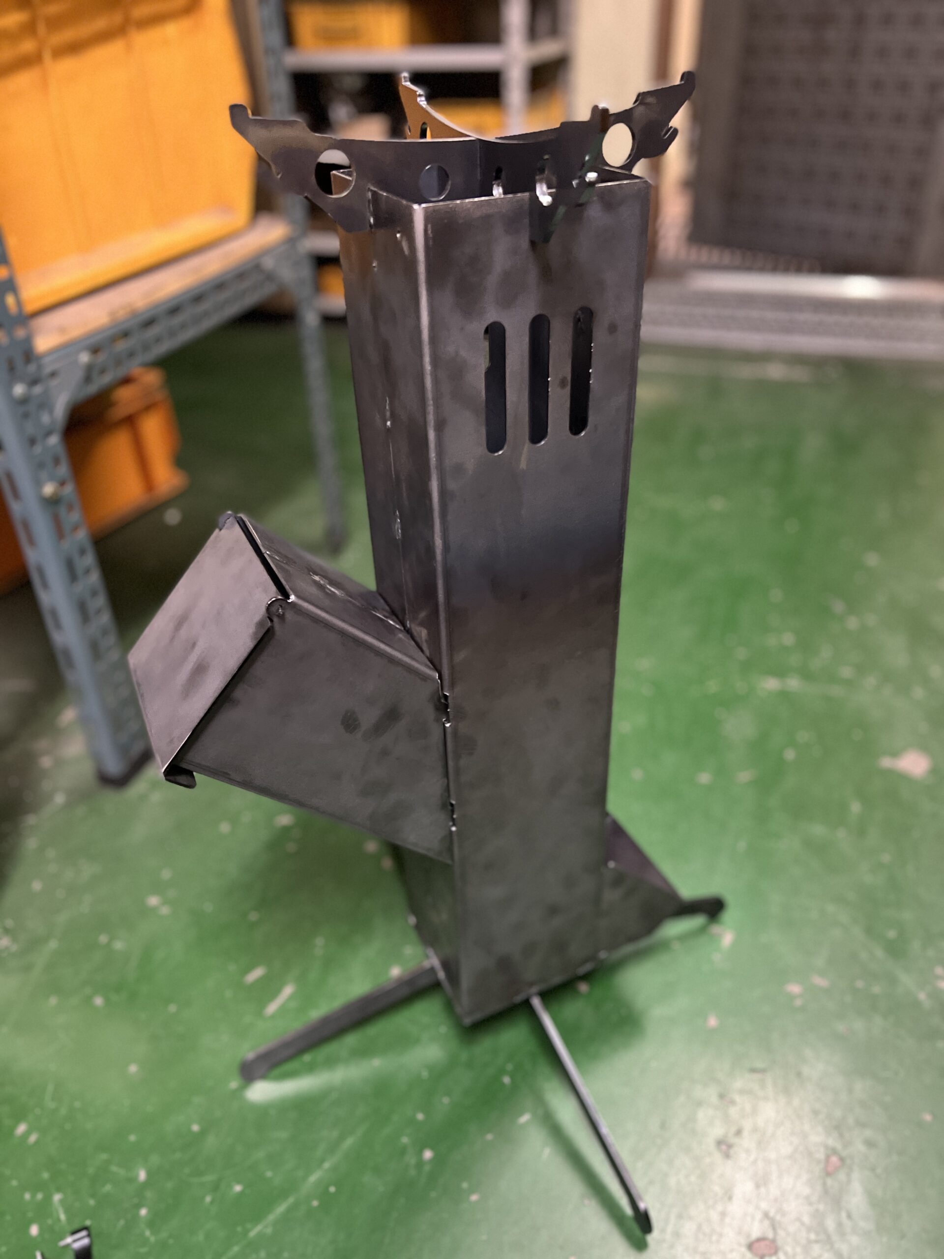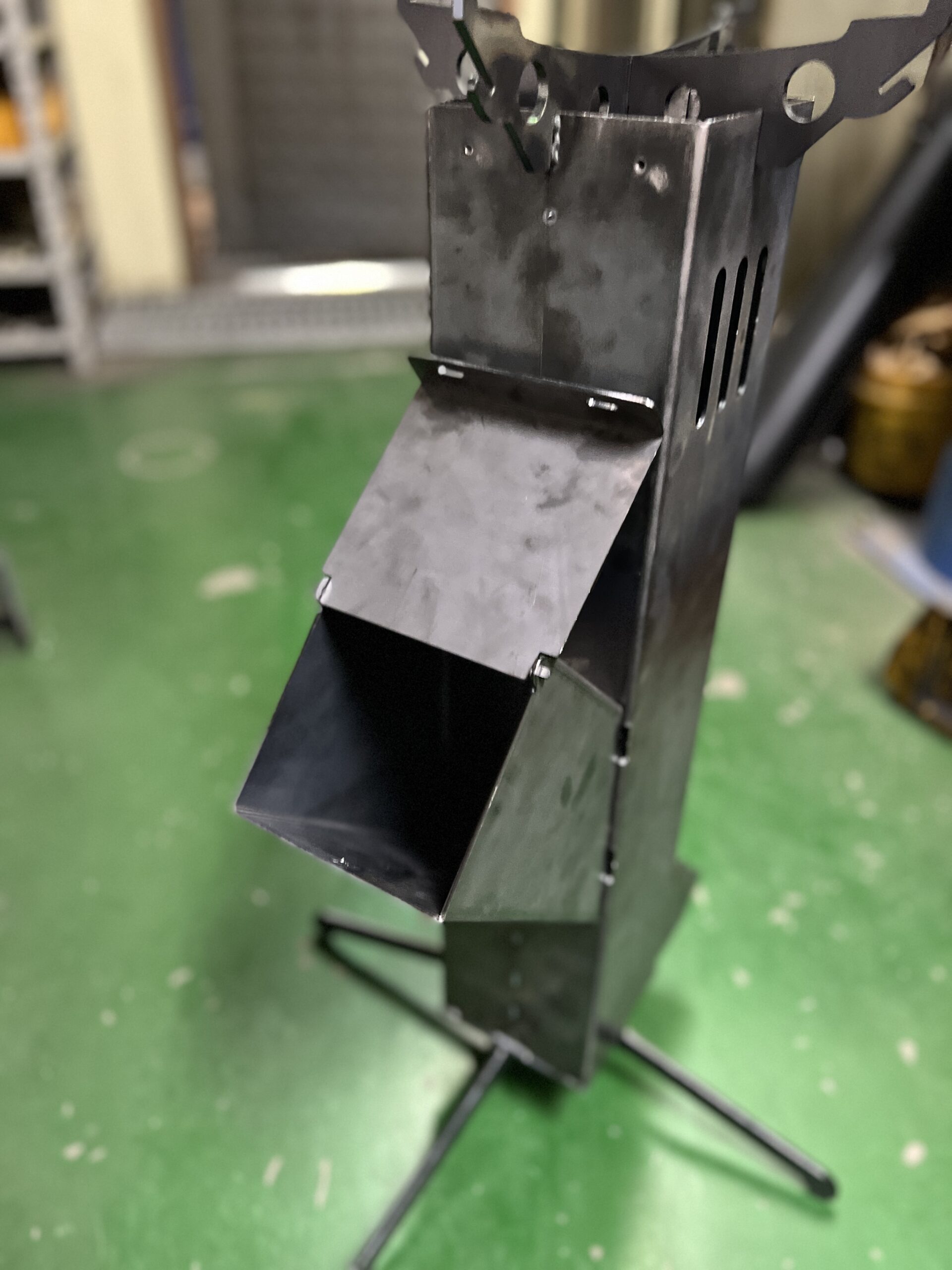 크기의 경우도 고민이 많았습니다. 사용자의 입장에서는 서서보다는 앉아서 이용하는게 좋을텐데, 로켓스토브 특성상 위로 길게 뻗어줘야 좋을 것 같았습니다. 첫번째 제작품은 서서도 앉아도 아닌 애매한 크기였습니다.