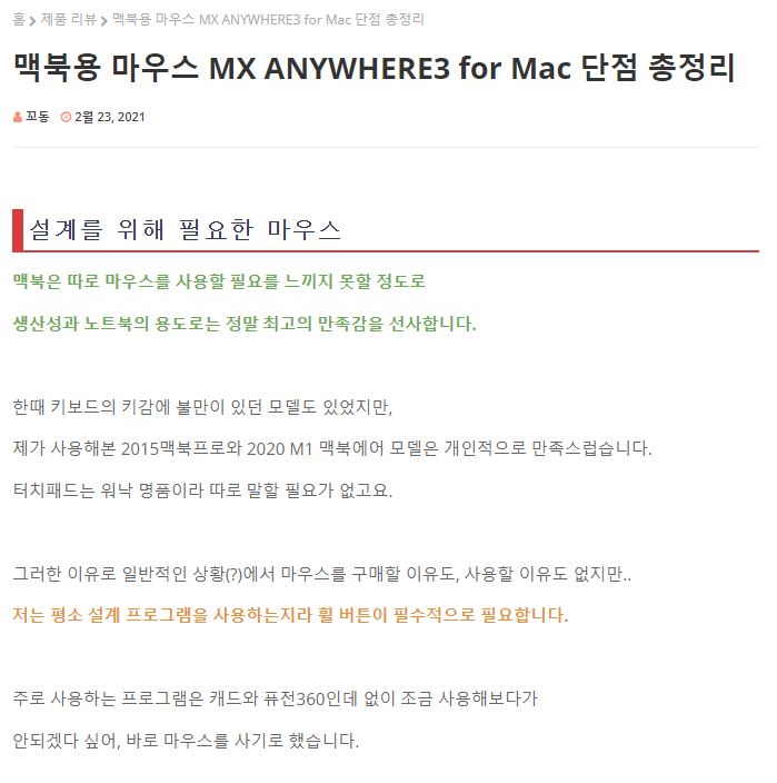 최근 구매한 로지텍 마우스로는 두번째 입니다. 첫번째는 mx 애니웨어3 포 맥 입니다. 해당 제품은 맥으로 설계를 할때 가끔 쓰곤 하는데, 지난 리뷰를보니 별로 만족스럽지 못했네요. 그런데 꽤 사용한 후기도 역시 마찬가지입니다.