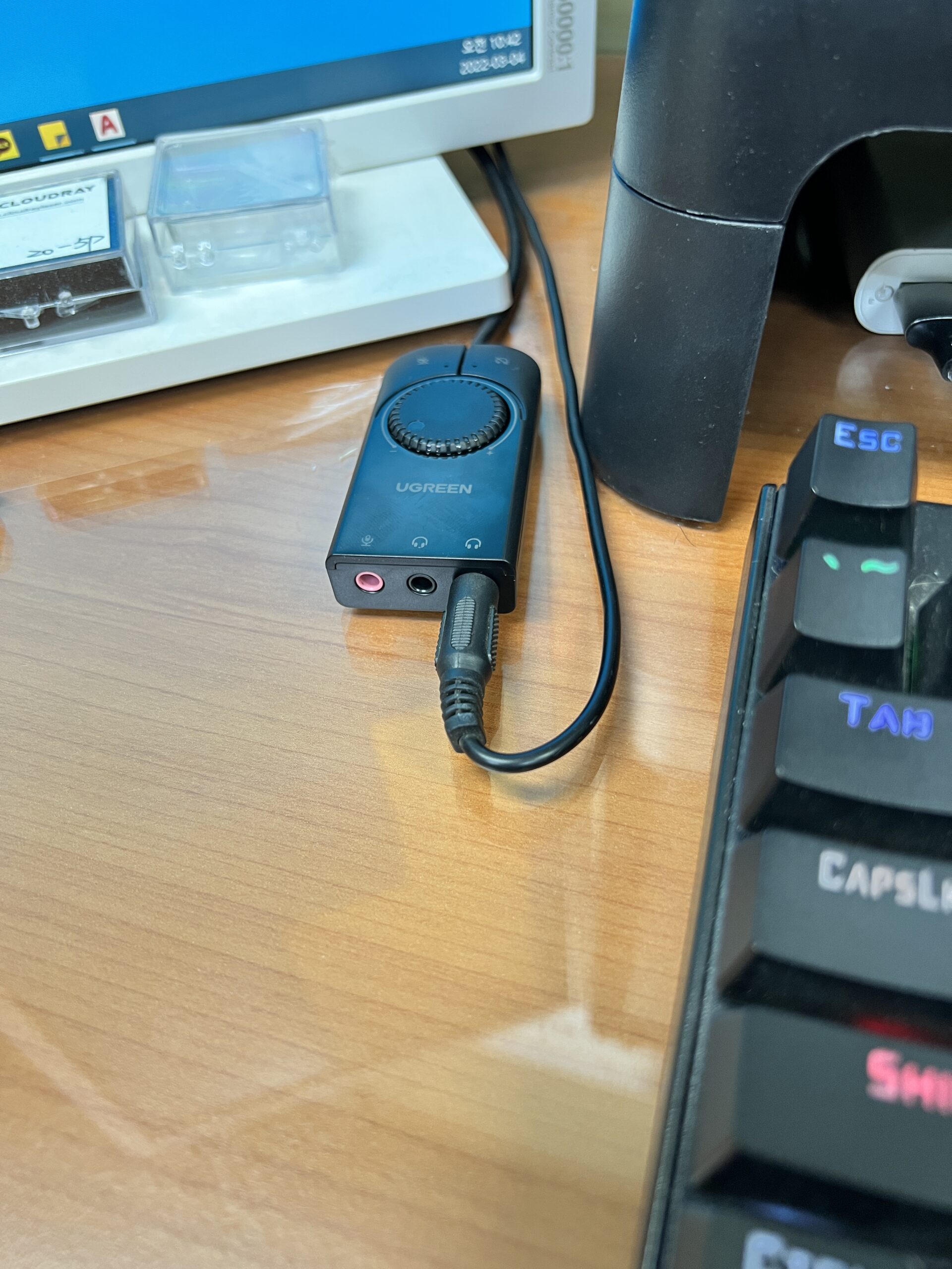 플러그앤플러그로 usb를 본체에 연결하면 됩니다. 이후 스피커 인풋케이블을 연결해주면 끝이납니다.