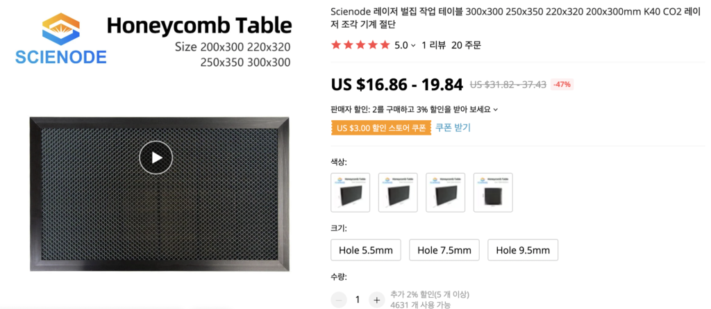 레이저 커팅기 허니콤 베드 제작 2탄