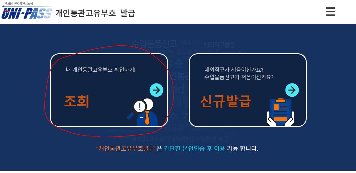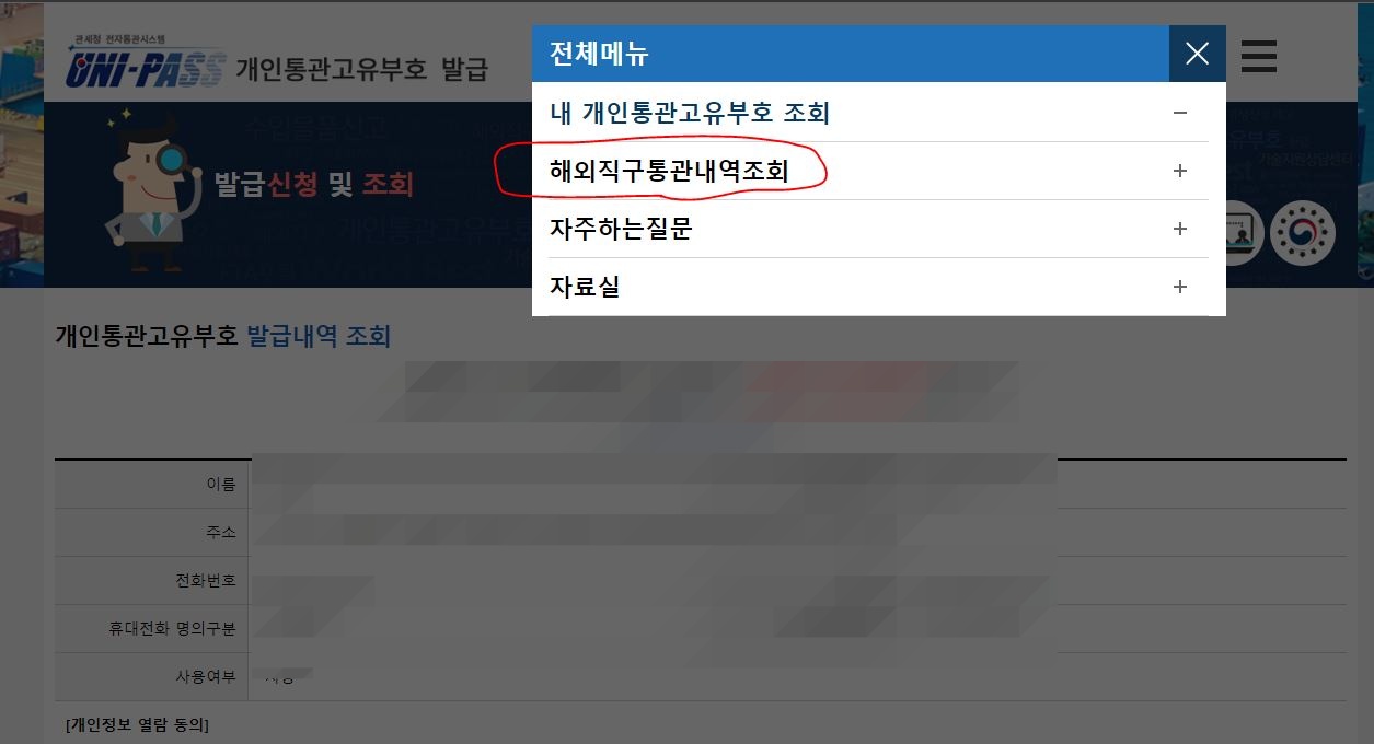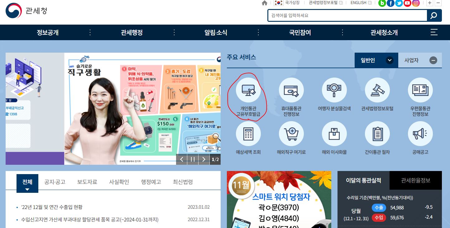 관세청은 해당 이미지대로 따라가면 확인이 됩니다.