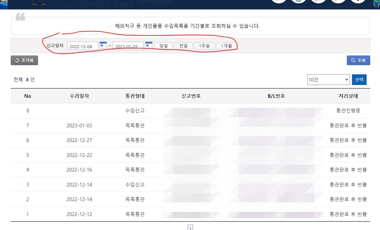 수입 제품은 관세청을 무조건! 방문합니다. 그 정보는 당연히 관세청에서 관리하고 개인은 그 정보를 확인 할 수 있습니다.