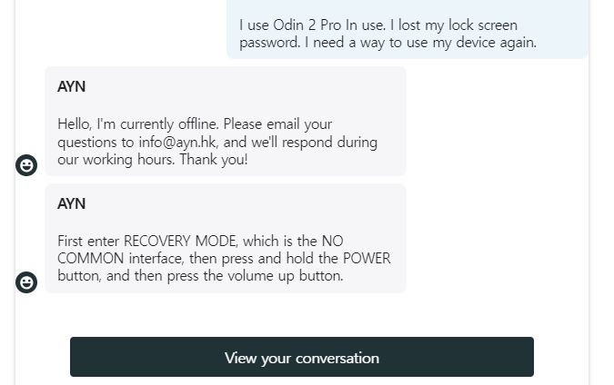 구글링등으로 정보도 수집했는데, 결국은 못찾고 최종적으로 제조사 ayn에 문의를 해서 초기화를 진행했습니다.
