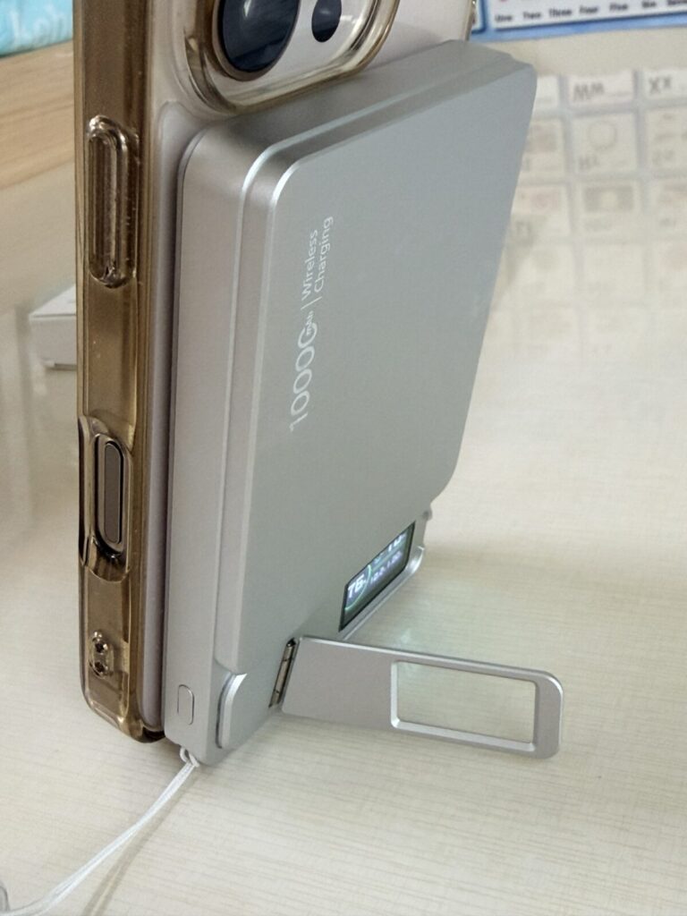 디자인도 깔끔하고 퀵(킥)스탠드에 유무선 맥세이프형 보조배터리입니다.